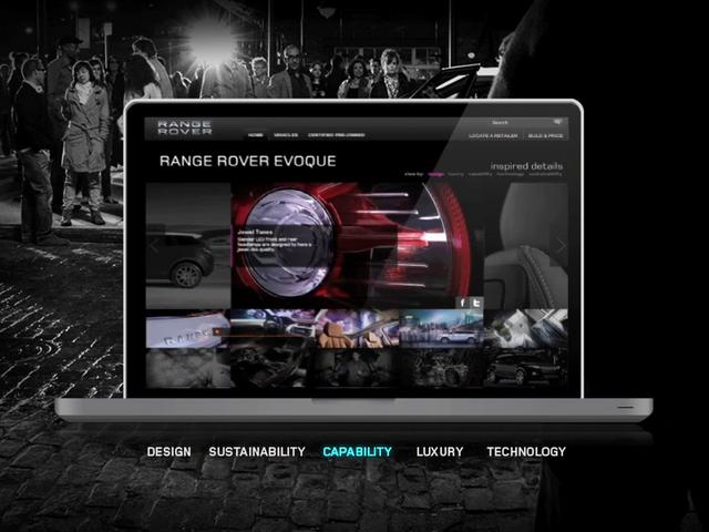 The Gilt Group Evoque package sold in 11 seconds. The Range Rover Evoque iAd created for both the iPhone and iPad exceeded all existing benchmarks. The average time spent for the iPhone iAd was 77.5 seconds, beating the industry average of 60 seconds (the auto industry avg. was 65 seconds). The iPad produced an average time spent of 80.1 seconds, beating the iPad iAd industry average of 60 seconds. The Evoque iAd also exceeded industry benchmarks for tap through rate (Our Result: .59%, iAd Average: .50%) and views per visit (Our Result: 8.10, iAd Average: 3.00). NY Times takeover. Within a 24-hour period, the creative generated 24,000 total interactions, representing 0.29% Engagement Rate. There were 97,000 total visits to the GWS (a new record, previous high was 64K), and 10,785 direct visits to LandRoverUSA.com from New York Times homepage. 89% of visitors were new to LandRoverUSA.com, and the average time spent on the site was 3 minutes 21 seconds. The site launched in tandem with the wider integrated, media launch on 10.3 and remains live to date. Between 10.3.2011 and 1.4.2012 - For the 238,192 visitors to the site, the average time spent was a staggering 13 minutes and 12 seconds. This is almost DOUBLE the average 6 minutes 56 seconds average time spent engaging with the GWS prior to the launch of this section. Similarly, the number of pages viewed by visitors has doubled from an average of 6.25 pages per visit to 12.55 on average.