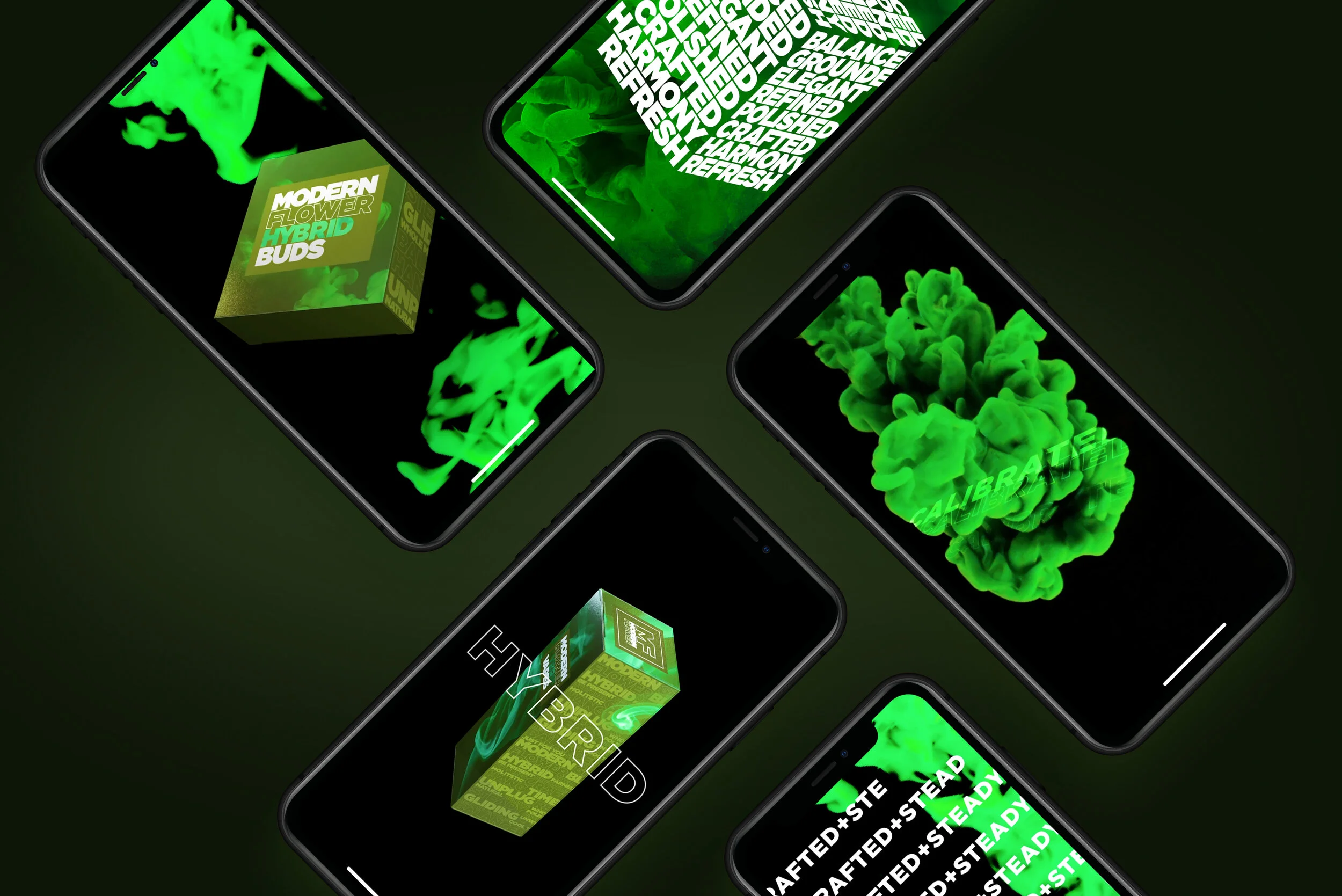 Modern Flower is a mid-tier priced horizontal brand. It was developed to fill a need to reach the modern day cannabis consumer, spanning the canna-curious or the more seasoned of users, modern flower has a broad range of quality, approachable products to fit all contemporary cannabis lifestyles. Project included a complete rebrand from an old name Harvest had trademarked. We used this name as there was a 60 day time table to getting the brand to market, on shelf. The design look and approach is visually designed to be a copy heavy in order to explain in detail the products and the innovation happening in modern grow and alternative delivery methods such as oils, vapes and grow. Product Design | Branding | Social | Package Design | Film | Retail POS | Photography | 3D | Site Design